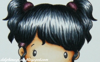 Je colorie toujours du plus foncé au plus clair (par préférence personnelle) et je commence donc avec ma couleur la plus foncée, C9, pour les zones de la chevelure qui seront les plus sombres.