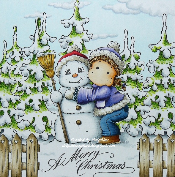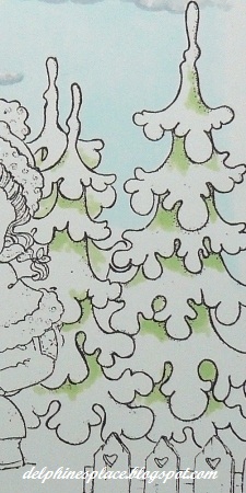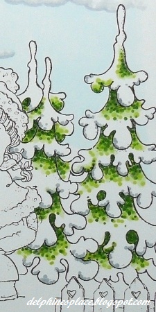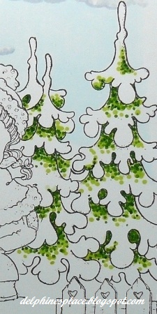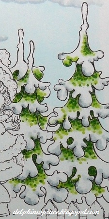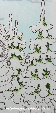 Voilà comment je colorie mes sapins et voici la scène en entier et tous les feutres utilisés: