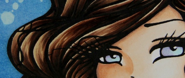 Pour cette carte, j’ai utilisé l’image digitale Expression Study 2 d’Hannah Lynn, disponible chez Crafts & Me, parfaite pour ceux et celles qui aiment colorier de belles chevelures! J’ai colorié mon personnage avec mes feutres Copic, puis je l’ai découpé. Pour le fond, j’ai utilisé des encres Distress sur papier aquarelle, puis j’ai collé mon personnage dessus. Enfin, j’ai ajouté un sentiment Paper Smooches, tamponné à l’encre Versamark puis embossé en blanc.