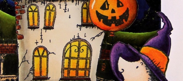 Bonjour à tous! Je partage aujourd’hui une carte que j’ai faite pour Copic Marker Europe, une petite scène d’Halloween réalisée au Copic avec deux tampons Penny Black.