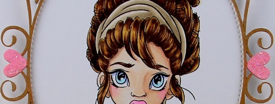 J’ai coupé l’image avec une découpe MFT ovale et peint un cadre chipboard Make it Crafty – Delicate Love Oval Chipboard Frame – avec toujours le même Copic rose RV02 et le même Posca Bronze. Enfin, j’ai ajouté des paillettes aux coeurs du cadre.