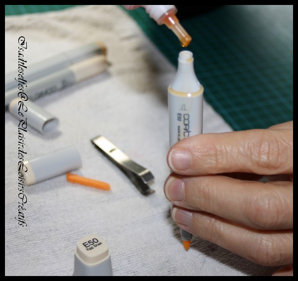 Ce qui est génial avec la gamme COPIC c’est qu’il y a presque toutes les couleurs dont on pourrait rêver. Toutes les personnes que je connais, et qui utilisent des marqueurs COPIC, m’ont toujours dit qu’elles rêvaient d’avoir toutes les couleurs (moi aussi d’ailleurs !). Les couleurs que j’utilise au quotidien sont Lipstick orange (R17), Lionet Gold (Y29) et Slate (BV29).