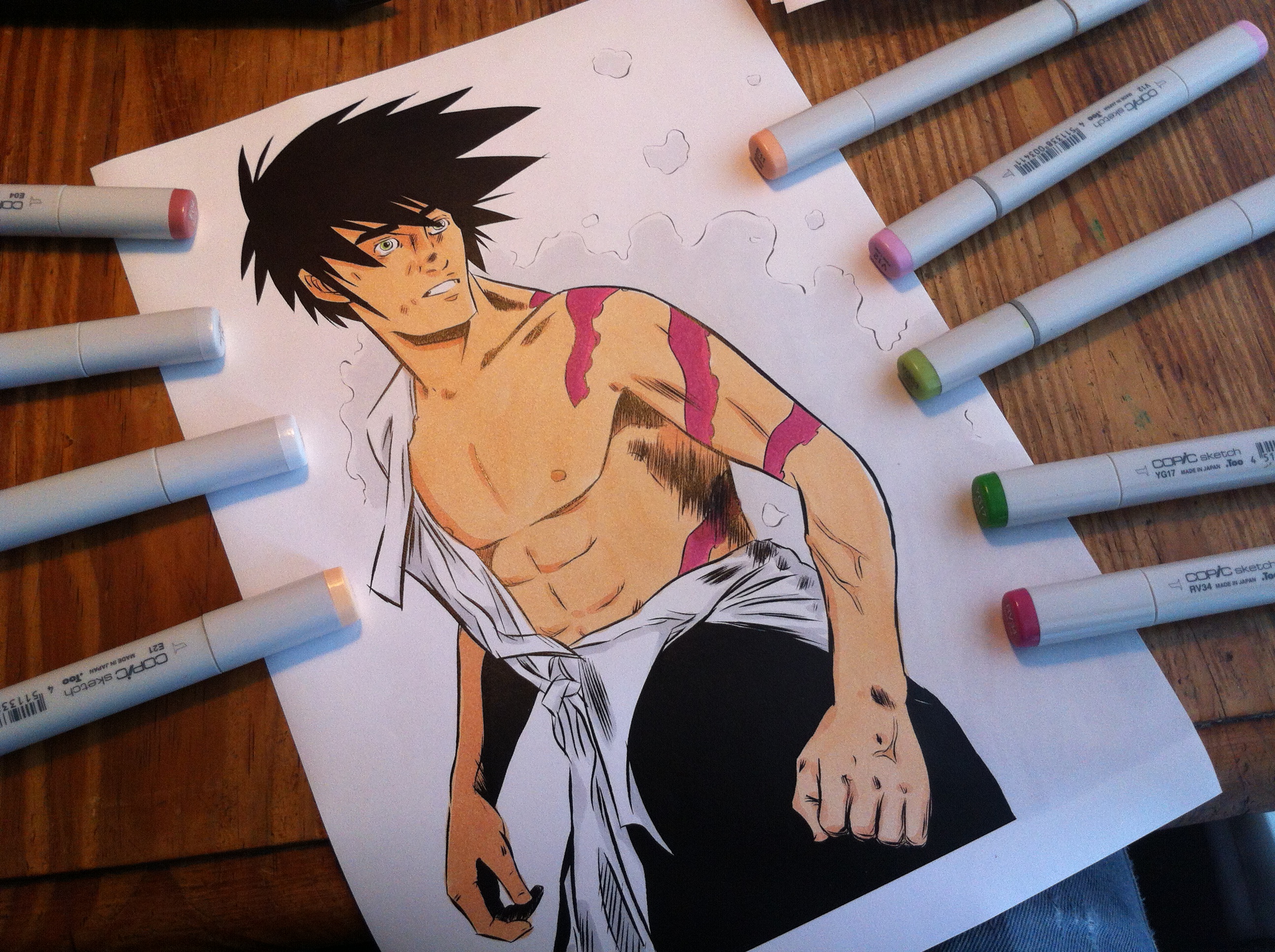 Le principal conseil que je pourrais donner (je viens juste de le découvrir moi-même), c’est d’utiliser le papier COPIC. Ça a été une révolution pour moi. Utiliser du papier qui ne traverse pas permet d’avoir des scans plus propres et nets, et ça permet de gagner du temps lorsque l’on rogne l’image sur l’ordinateur. J’utilise le PM pad.