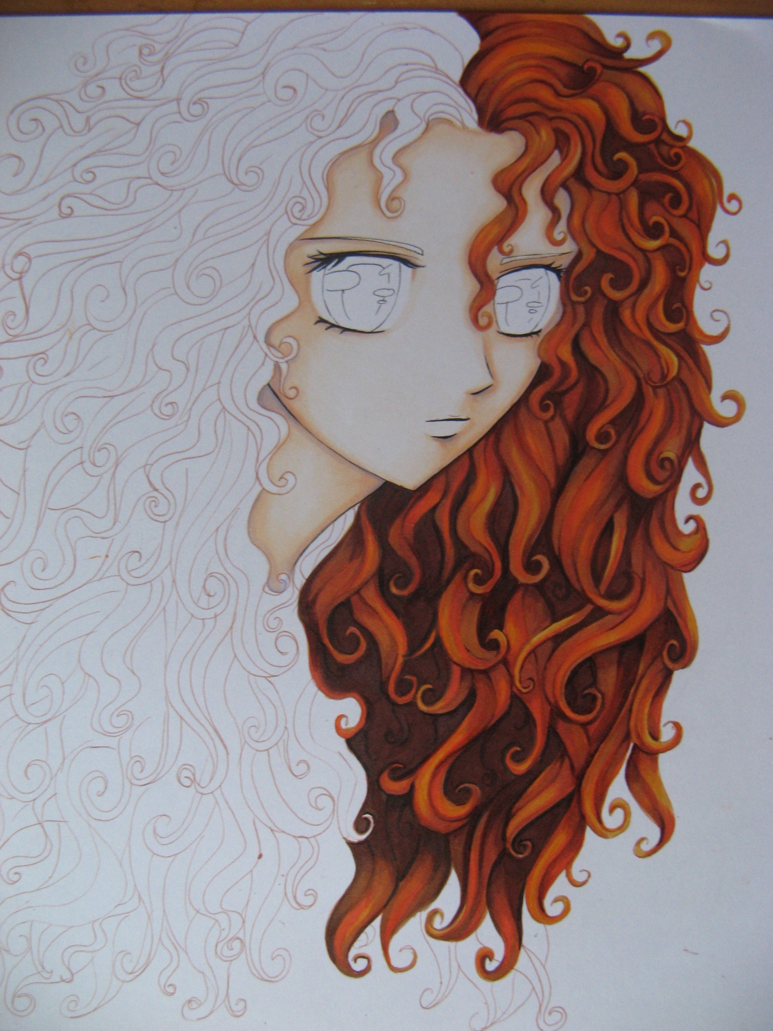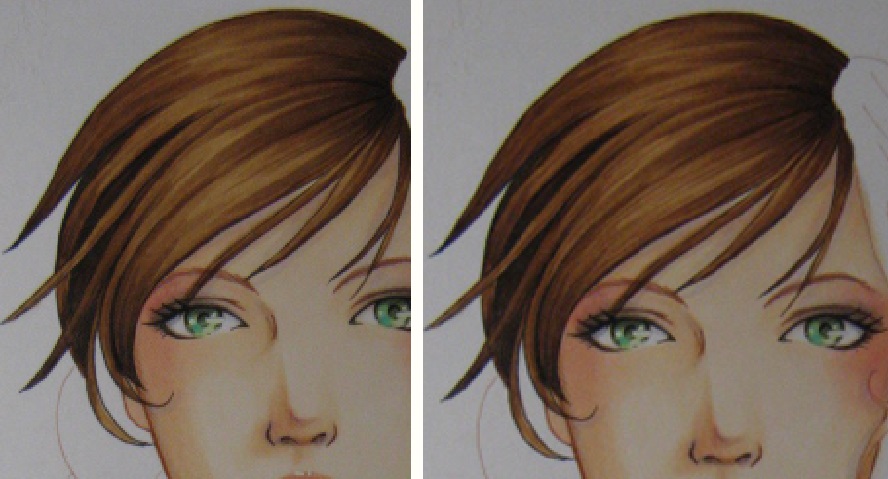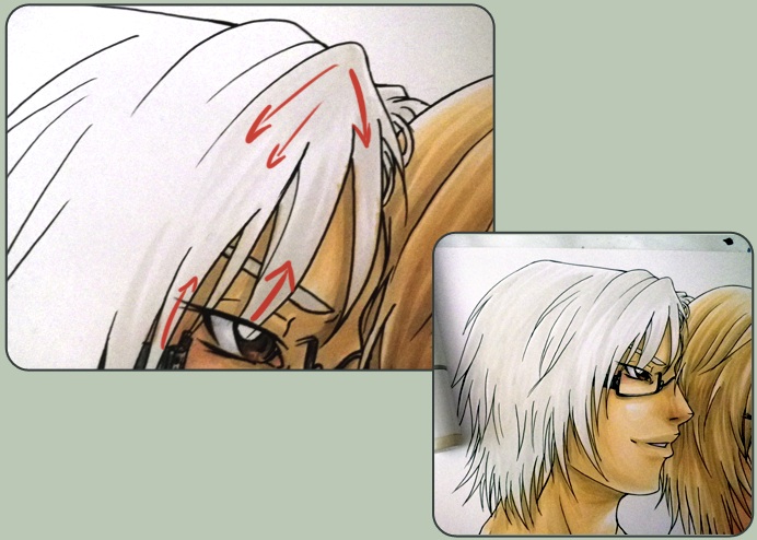 Je procède de la même façon sur tous les cheveux en respectant bien la logique des ombres.
