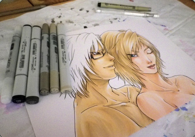 Q : Tu utilises pleins d’autres outils en plus des marqueurs COPIC. Dans quels cas est-ce que tu choisis de travailler avec les marqueurs COPIC ?